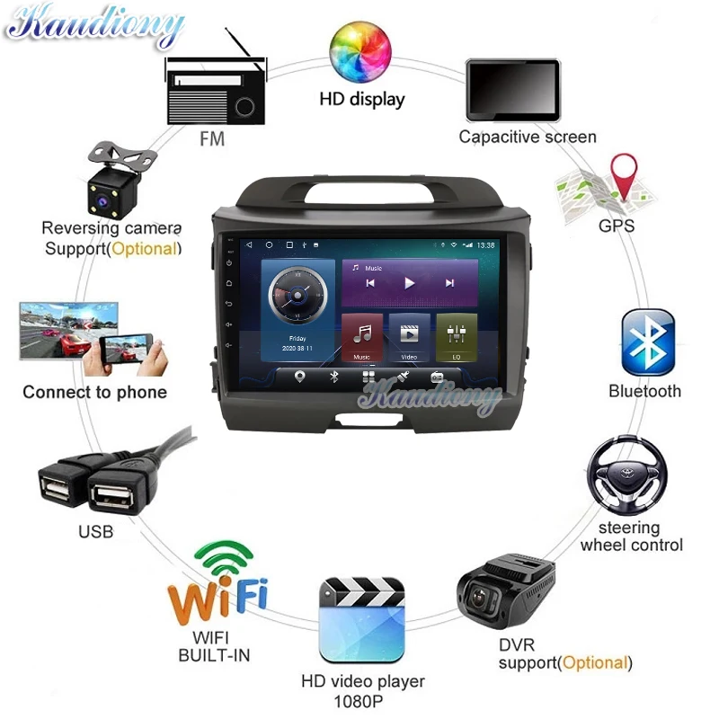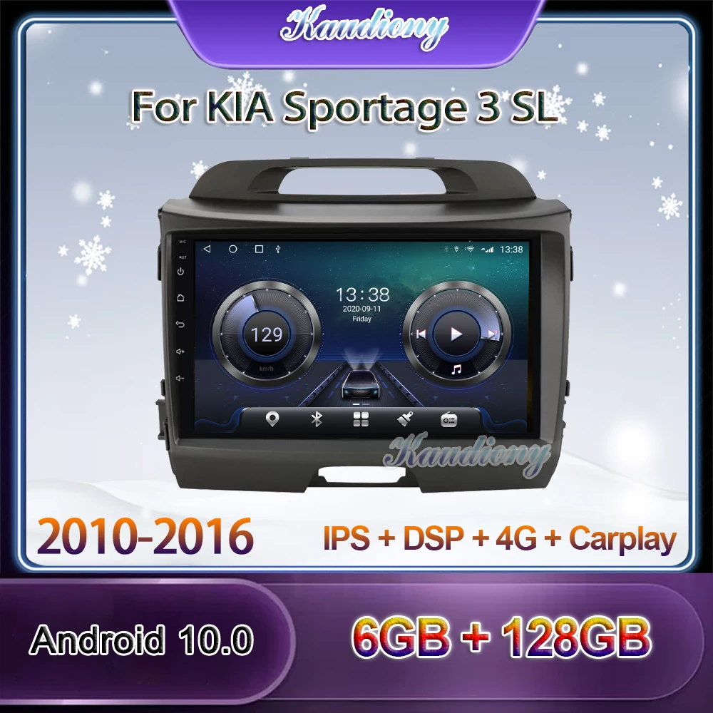 Автомагнитола Kaudiony, мультимедийный проигрыватель на Android 10,0, 9 дюймов, GPS, 4G DSP, для KIA Sportage 3 SL 2010 - 2016
