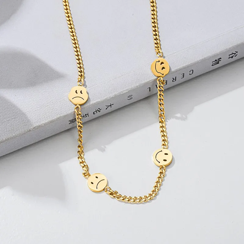 Женское Ожерелье MEYRROYU, колье из нержавеющей стали трех цветов с изображением лица и плача, цепочка до ключиц, подарочное Ювелирное Украшение для вечеринки, 2021