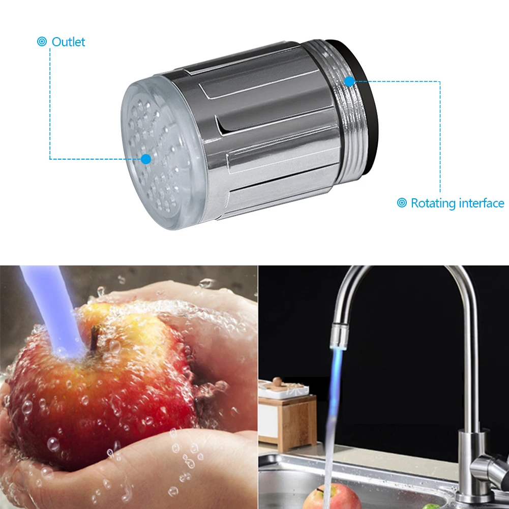 Светодиодный термочувствительный 3-цветный светящийся смеситель для кухни, ванной, душа, светящаяся водосберегающая Насадка-аэратор для крана