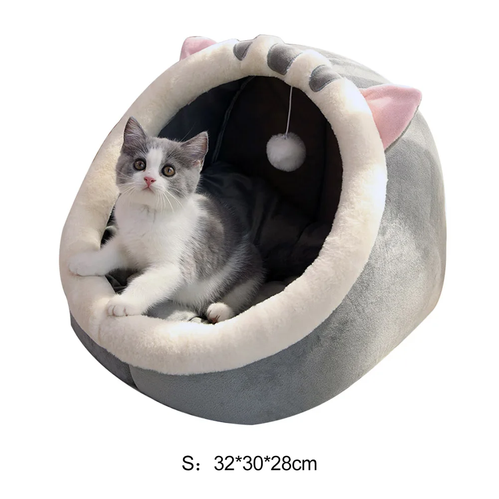 Кровать для кошек, теплая корзина для домашних животных с помпоном,...
