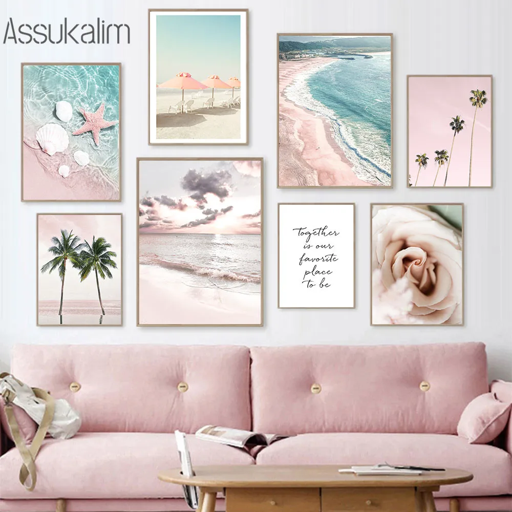 Картина для серфинга, Настенная картина розового цвета на холсте, с...