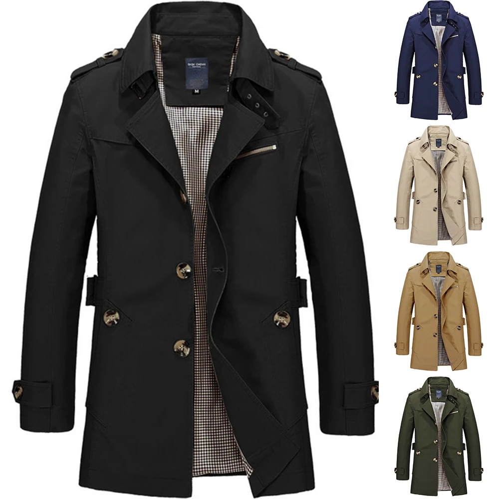 Мужская куртка, Тренч, Повседневная облегающая куртка, на осень