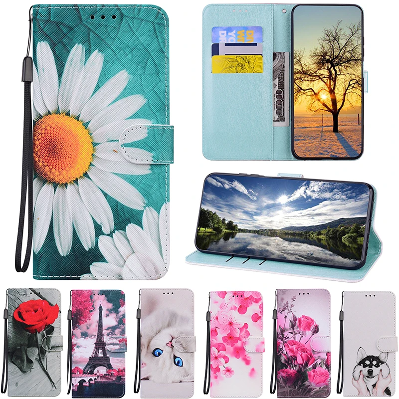 Кожаный чехол-книжка с цветочным рисунком для XIAOMI Redmi 9 9A 9AT...