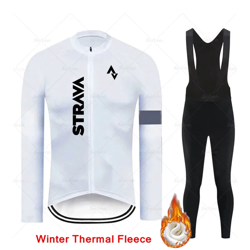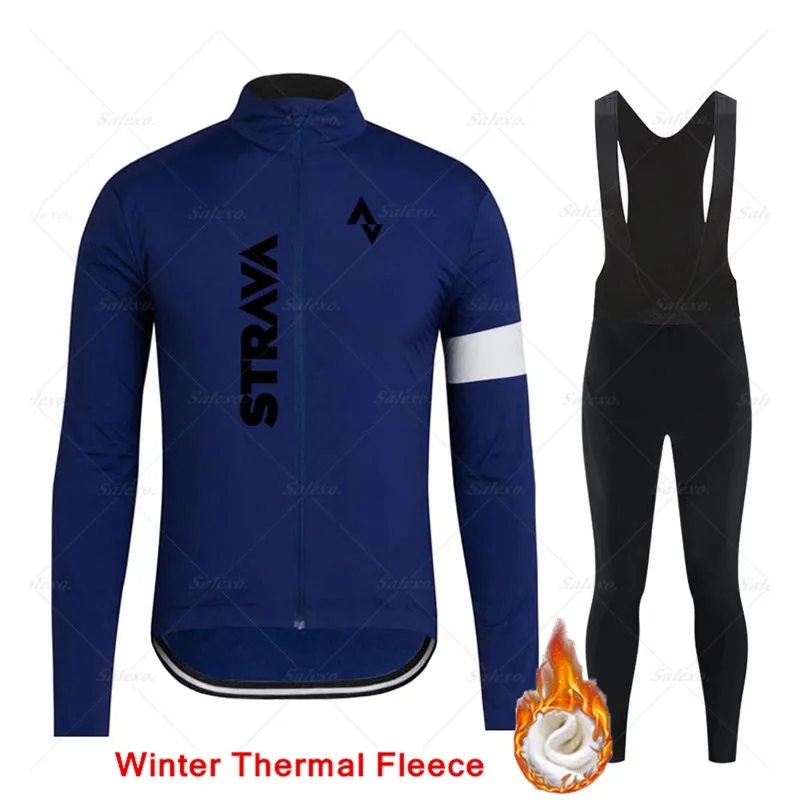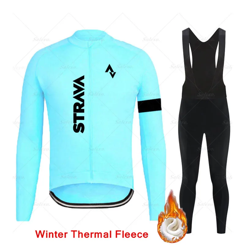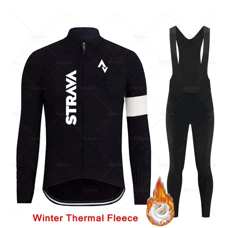 STRAVA зимний теплый флисовый Мужской комплект с длинным рукавом для езды на велосипеде трикотажная накидка брюки Ropa Ciclismo велосипедная одежда костюм для горных велосипедов