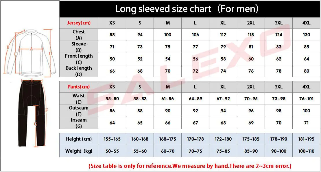 ИнформацияТрикотаж: 100% полиэстерБрюки: 20% полиэстер и 80% лайкраПодкладка: брендовая гелевая Подушка 19DФункция: дышащая/быстросохнущая/УФ-защита/сжатиеХарактеристика1. Светильник, быстросохнущий, дышащий.2. Сторона сетчатой вентиляционной сетки3.Coolmax 19D более удобная гелевая подкладка.4. Эластичная плотная ткань, больше подходит для занятий спортом5. Одежда и штаны с антискользящим поясом, больше подходят для занятий спортом.ПримечаниеМы можем смешать размер, но необходимо оставить комментарий «пуловер размера XXL и брюки размера XL»Обычно отправляется как мужской стиль, если вам нужен женский стиль, просто оставьте сообщение: для женщин