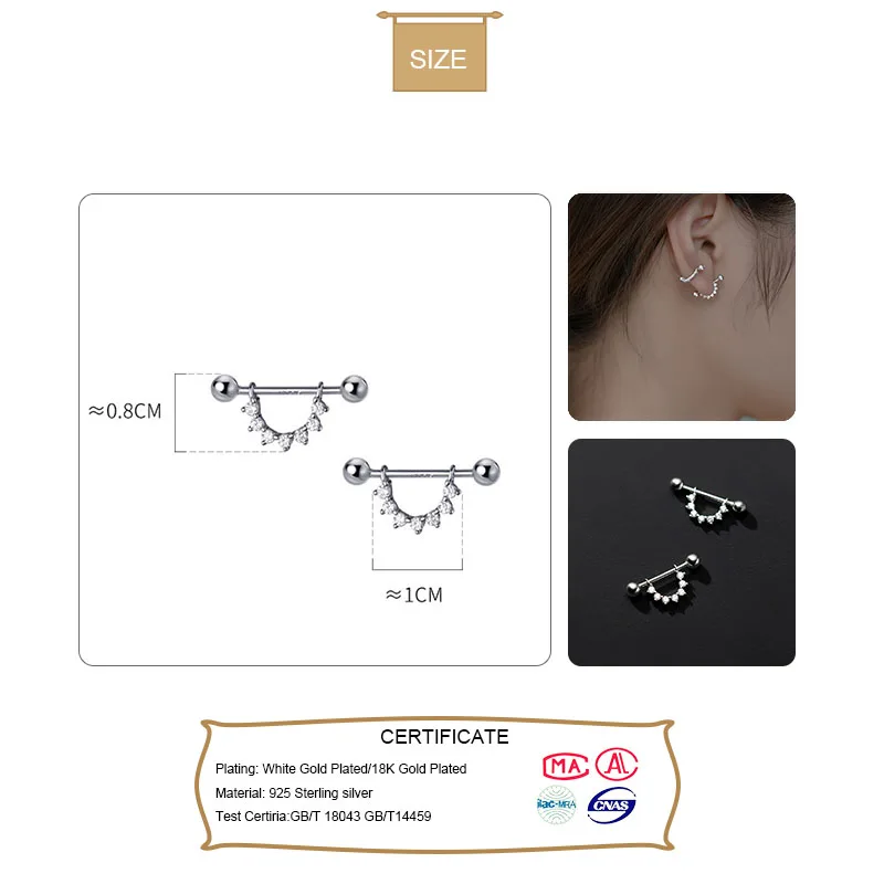 TrustDavis, серебро 925 пробы, 1 шт., циркониевая игла для ушей-зве...