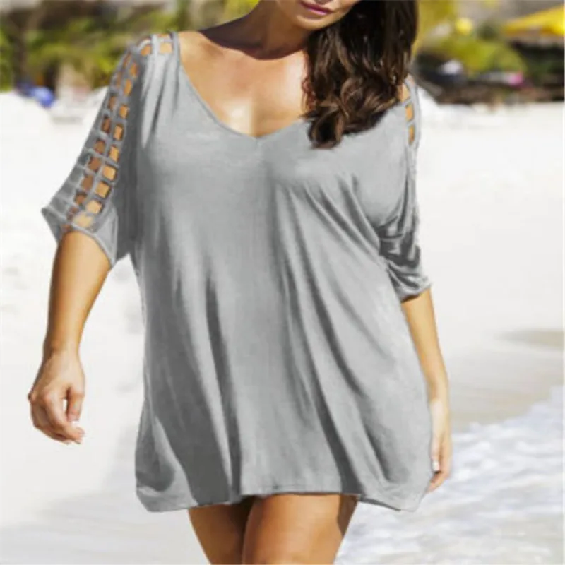 Летняя женская блузка свободного кроя, Пляжная накидка для бикини, ...
