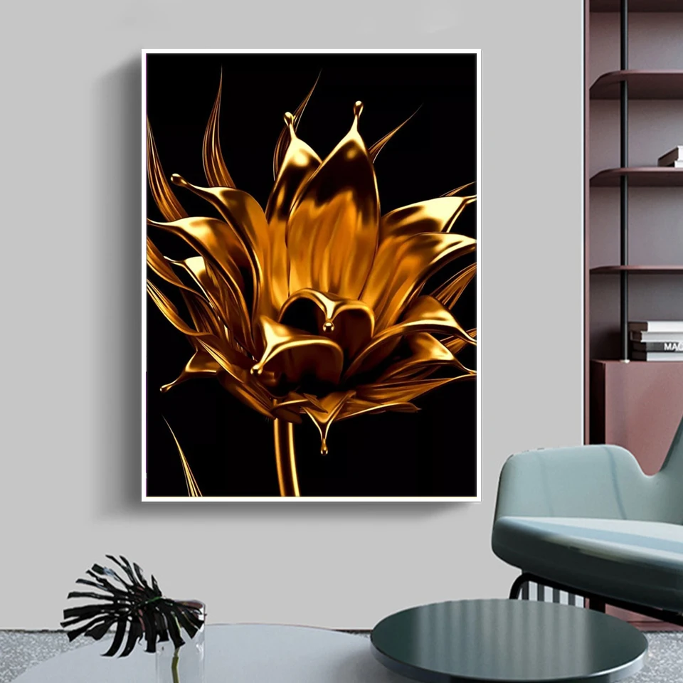 Алмазная 5D живопись сделай сам, алмазная вышивка с золотыми цветами, мозаика из страз, домашний декор, вышивка крестиком