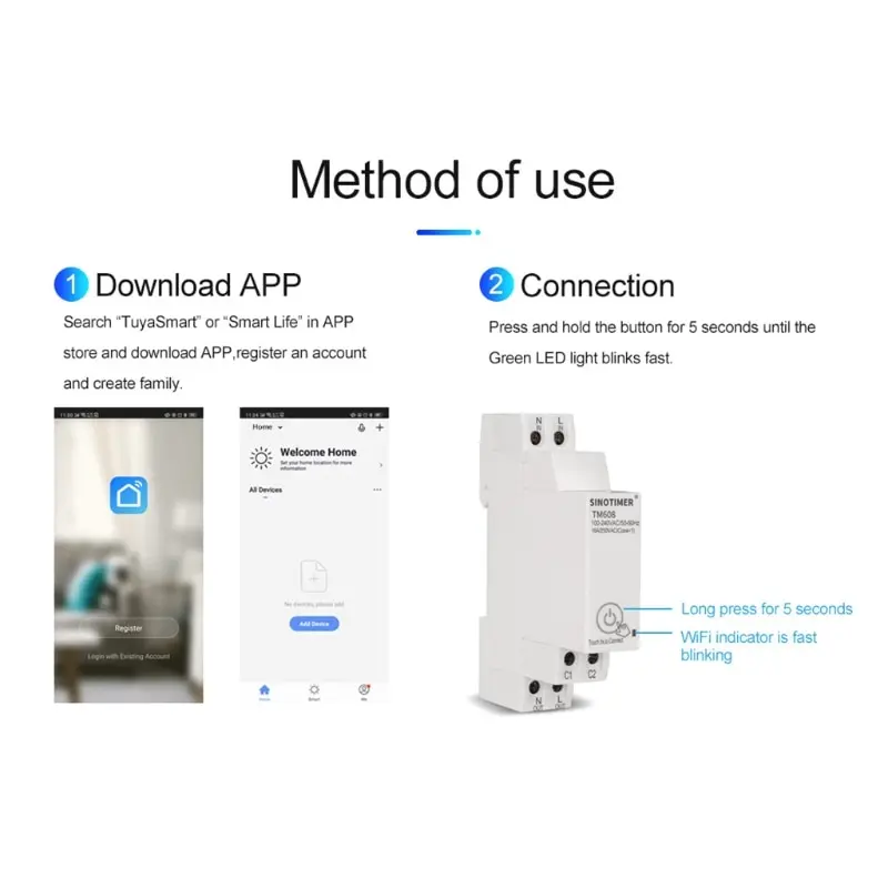 1. Дистанционное управление вкл/выкл через приложение Tuya или приложение Smart Life в любое время из любого места