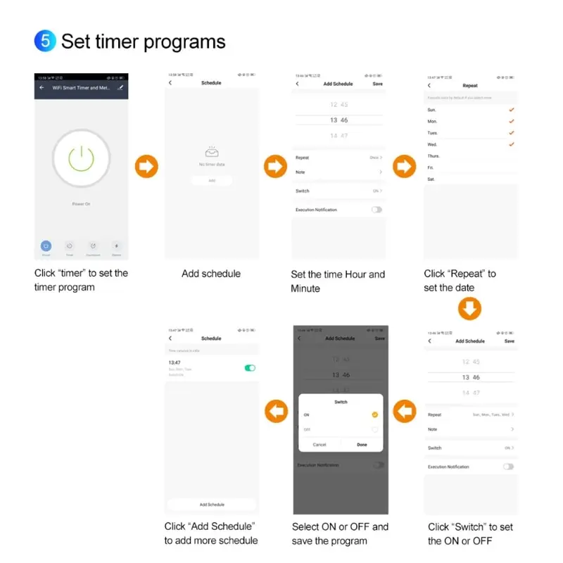 4. График времени/таймер, 100 видов моделей таймера (ВЫКЛ/ВКЛ) в день или в неделю.