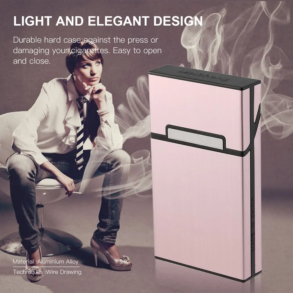 Особенности:Легкий и элегантный дизайн.Прочный металлический жесткий чехол против нажатия или повреждения сигарет.Портативный мини-размер, легко носить с собой.Легко открывать и закрыватьУдобно носить с собой, эффективно удерживает сигареты от влаги и плесени.