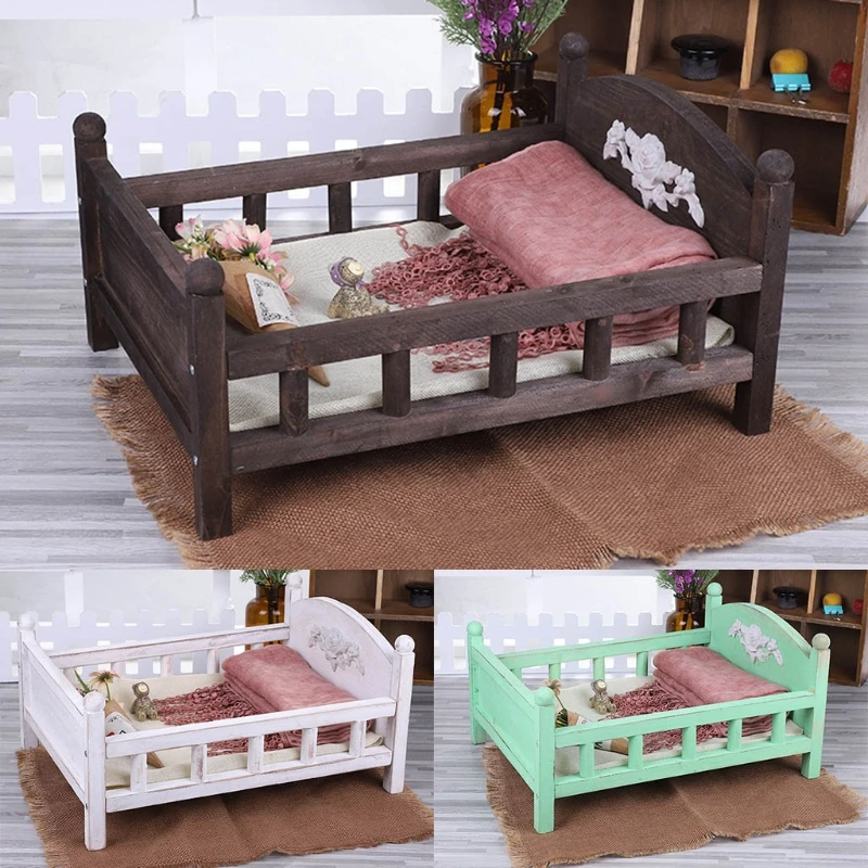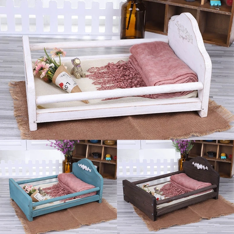 Мини-кровать для новорожденных, реквизит для фотосъемки детей, хлопковая веревка, плетеная деревянная детская кроватка