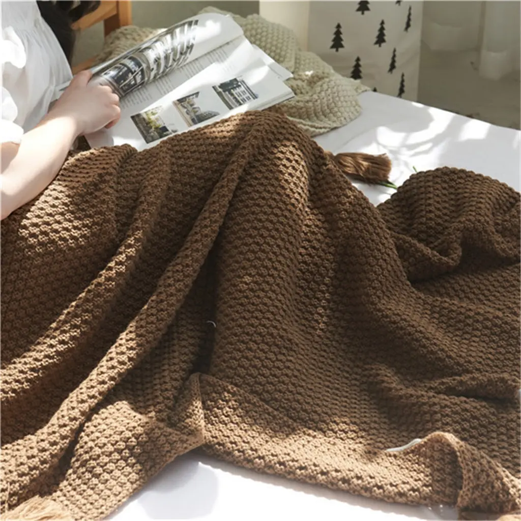 Нордическое вязаное одеяло с кисточками, мягкое одеяло, шаль, чехол...