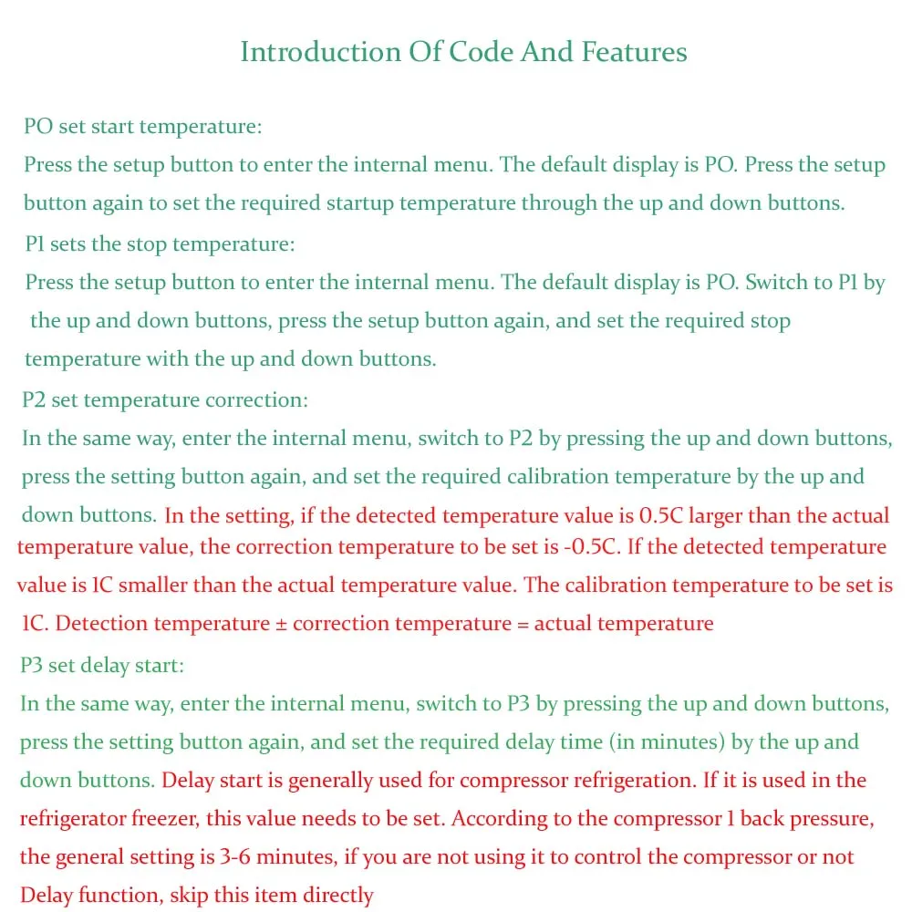 Инструкции: P0 настройка температуры запуска: Нажмите кнопку настройки один раз, чтобы войти во внутреннее меню, дисплей по умолчанию P0, нажмите кнопку настройки снова, И установите требуемую температуру запуска через кнопки вверх и вниз.