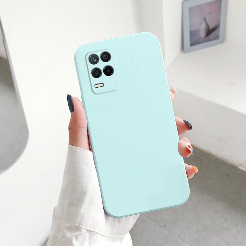 Жидкий силиконовый чехол для OPPO Realme 8 Pro 7 7i 6 6s 5 5s 5i X X2 XT V5 5G противоударный мягкий квадратный край ТПУ задняя крышка