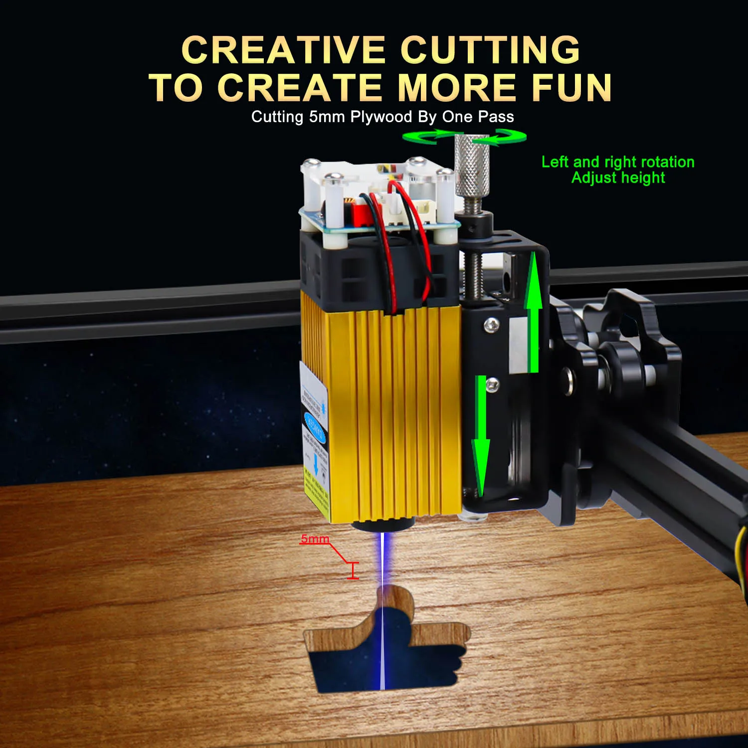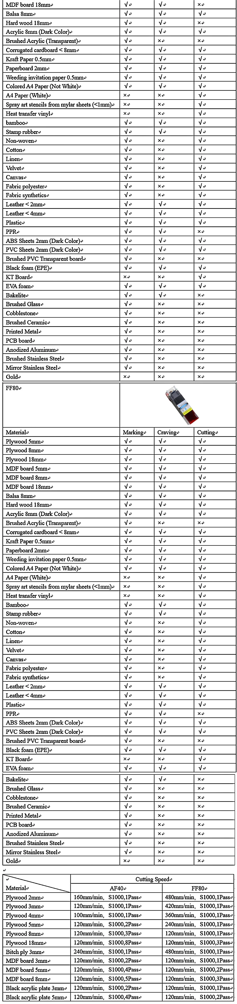 40 Вт модуль: с технологией FAC точность гравировки выше, резка 4 мм фанеры/красочный акрил; Резьба по дереву, пластмассе, бумаге, бамбуку, рожку быка, коже, губчатой бумаге, камень, нержавеющая сталь и т. Д.