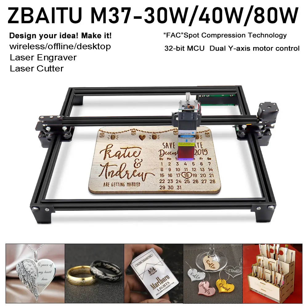 Лазерный гравер, 30 Вт, 40 Вт, 80 Вт, 37x37 см