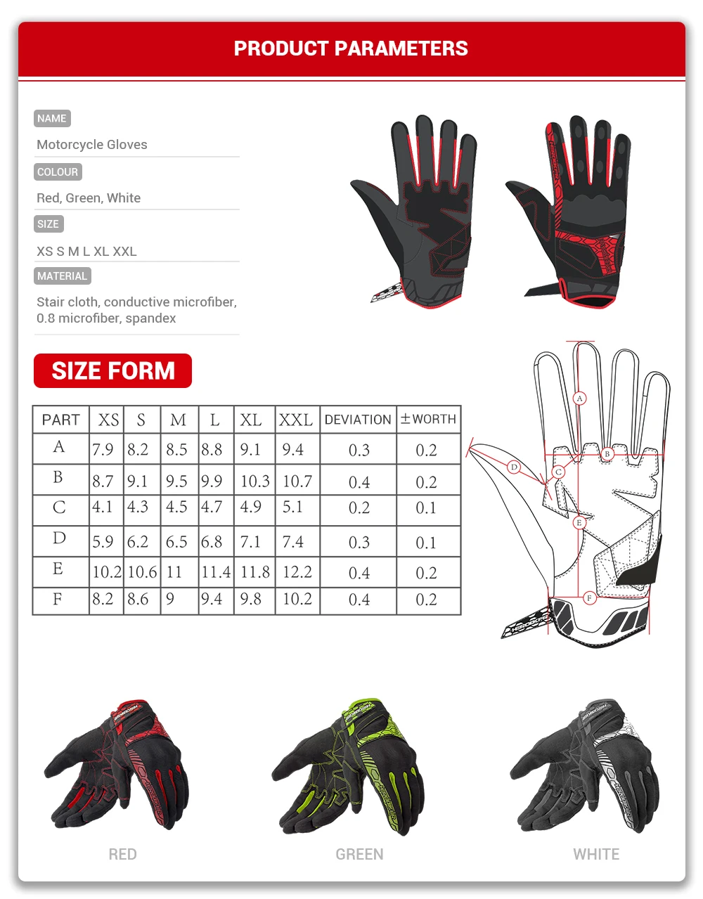 Посылка включает в себя1 пара мотоциклетных перчаток