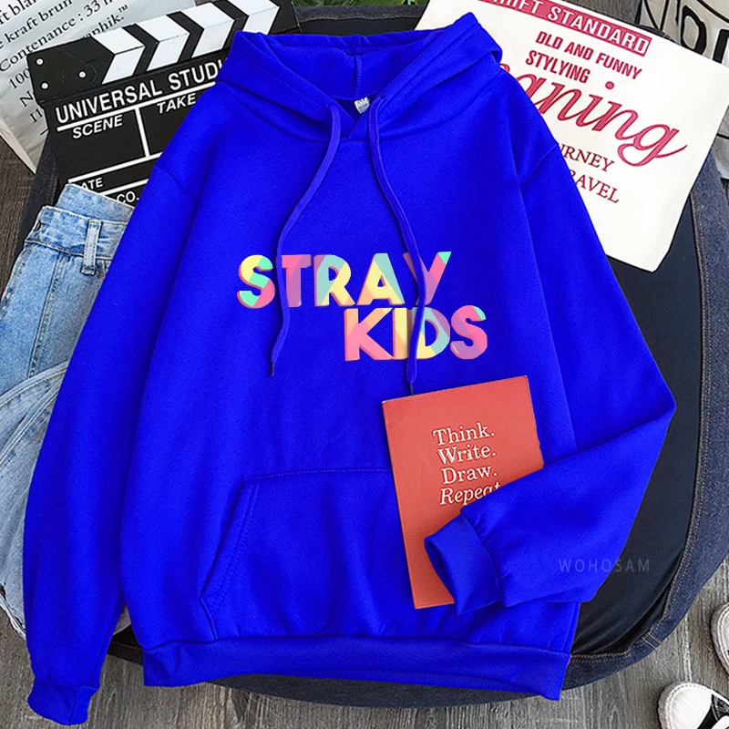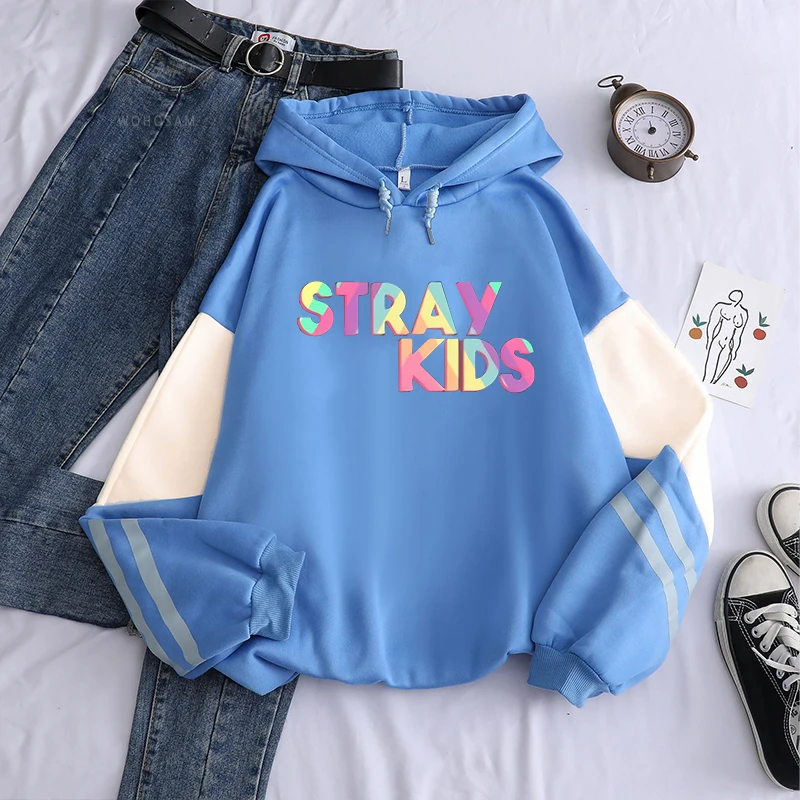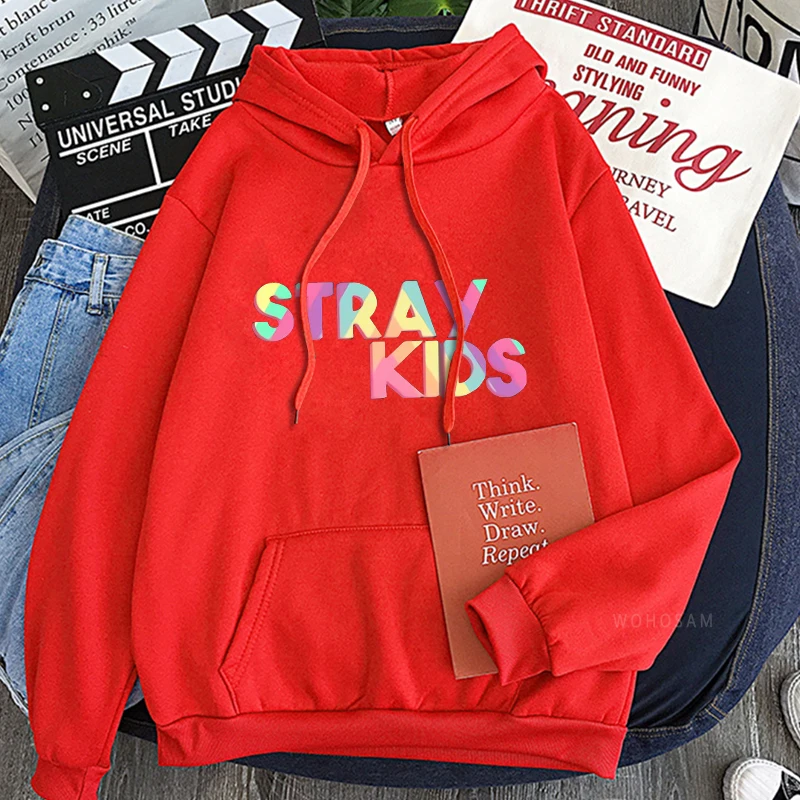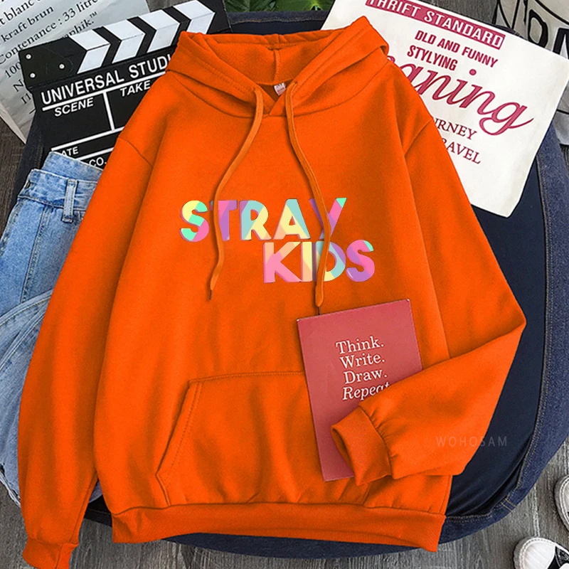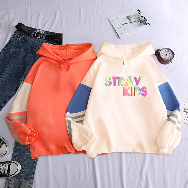 Толстовки KPOP Straykids с капюшоном, мужские, с длинным рукавом, в стиле Харадзюку, разноцветные, с надписью