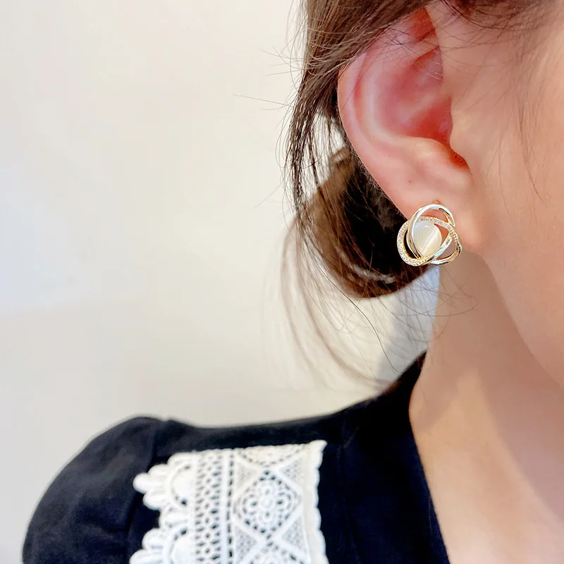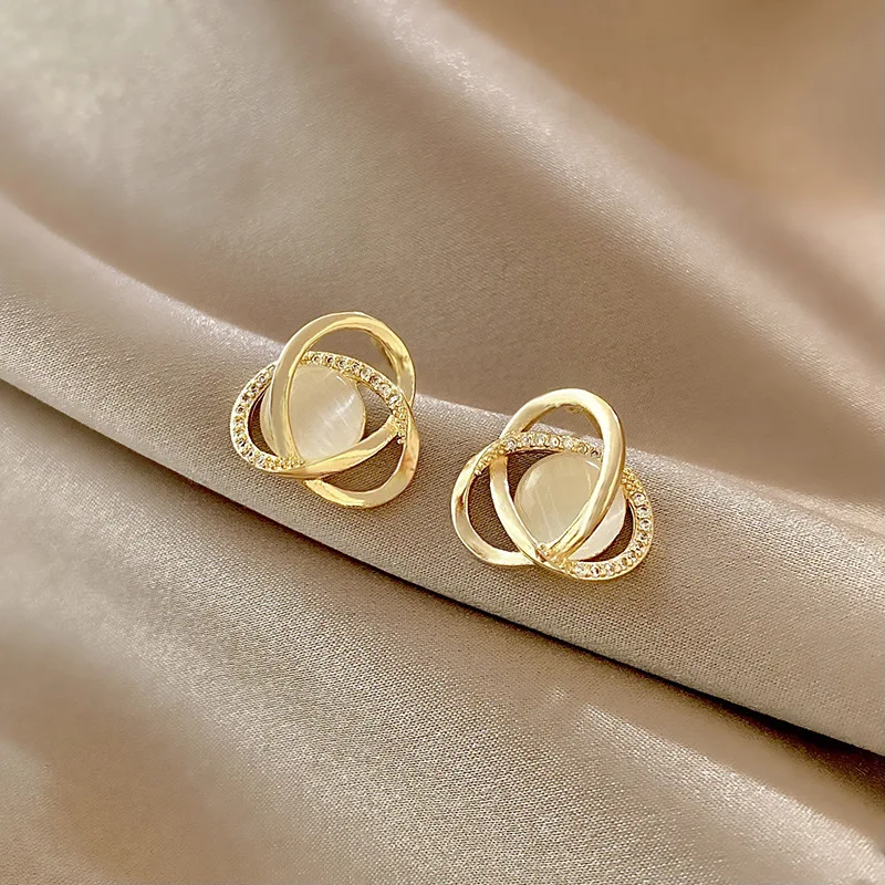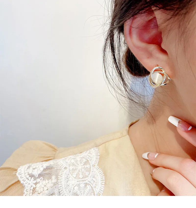 Новинка 2021, корейские модные простые серьги, характерные универсальные серьги с камнем кошачий глаз, элегантные женские ювелирные изделия