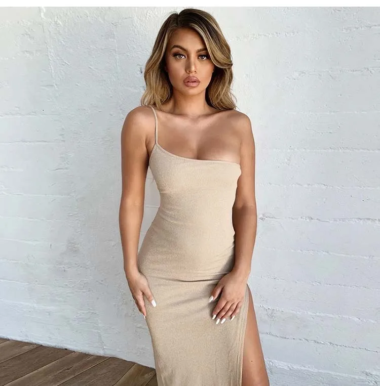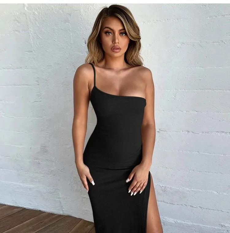 Женское сексуальное платье на одно плечо с разрезом, женское одното...