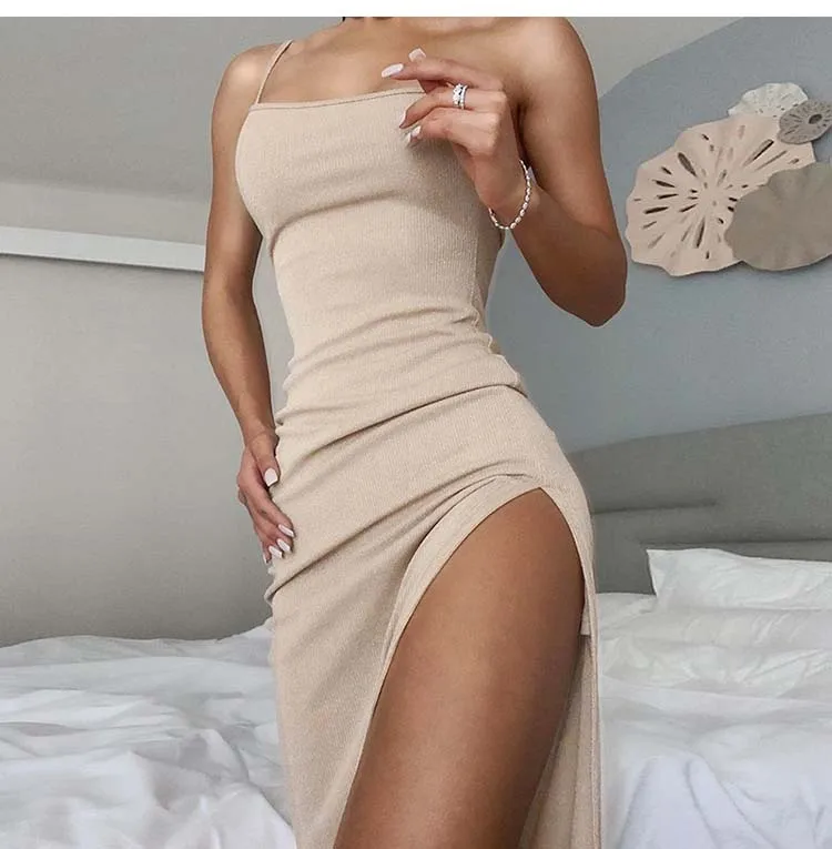 Пижама женская длинная облегающая с открытой спиной и высоким разрезом