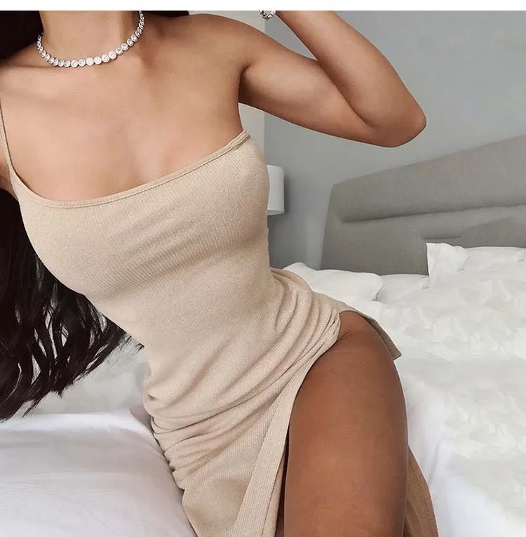 Женское платье на бретелях без рукавов, однотонное облегающее Повсе...