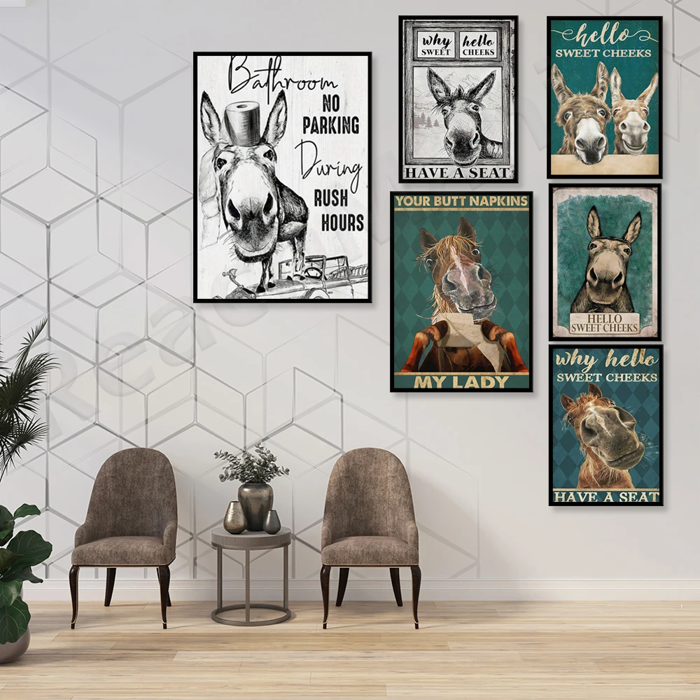 Постер для ванной комнаты с изображением лошади, искусство на стену в ванной комнате