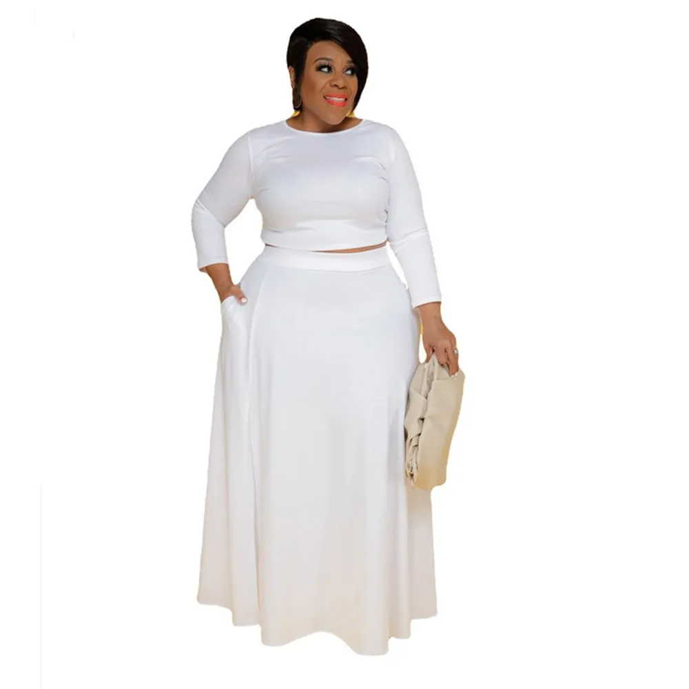 Женский комплект из двух предметов, женская одежда, короткий топ с длинным рукавом и юбка макси с высокой талией, подходящий костюм, оптовая продажа, Прямая поставка