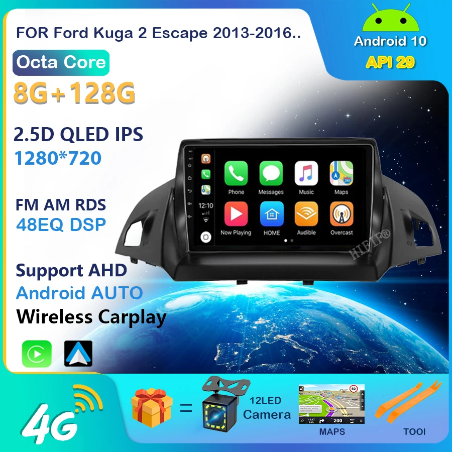 Автомагнитола Carplay для Ford Kuga Escape 2013-2016, 4 + 64 ГБ, Android 10, GPS, 2 din