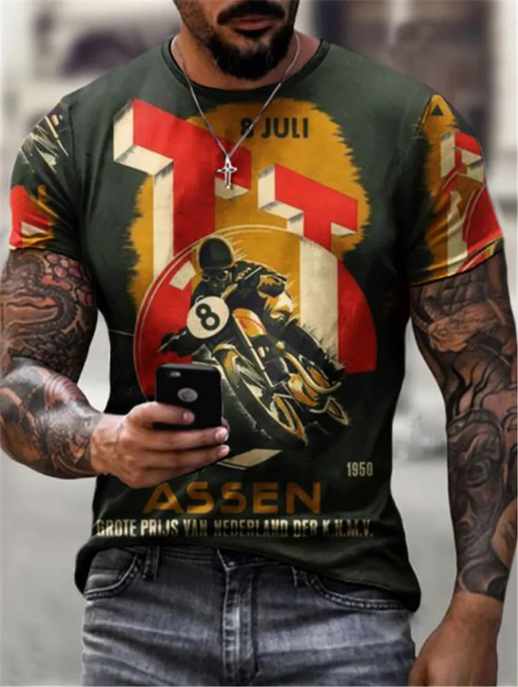 Футболка мужская оверсайз с коротким рукавом, мотоциклетный топ с н...