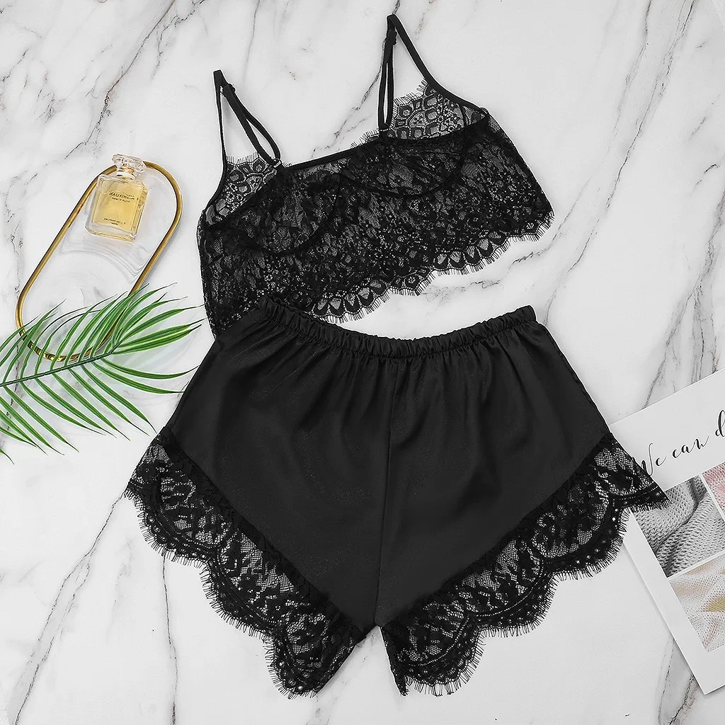 characteristic 3Sexy V-Neck Sleeveless Satin Lace Sleepwear Pijama