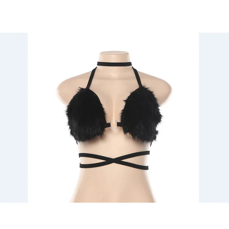 Лидер продаж, сексуальный женский мягкий флисовый бюстгальтер с мехом, розовый, черный, укороченные топы на бретельках, женское нижнее белье, бюстгальтеры, короткий топ
