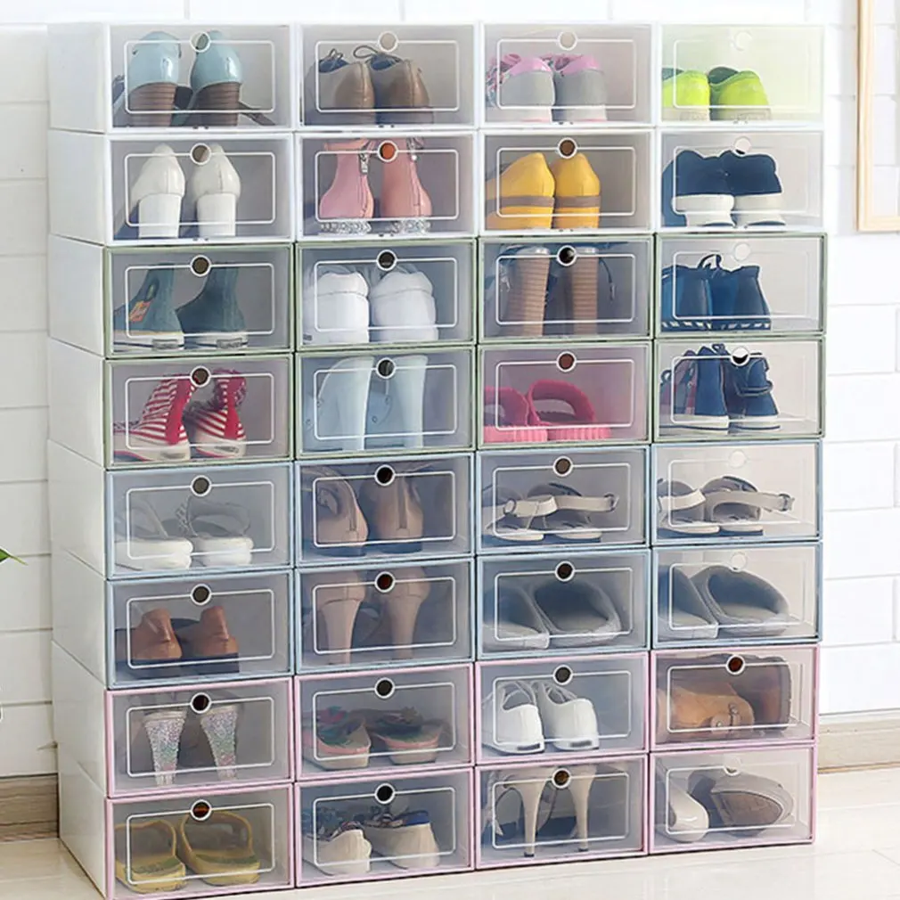 Утолщенный прозрачный ящик-органайзер, коробки для обуви, штабелируемые складные ящики для обуви сделай сам, контейнер для хранения, Органайзер