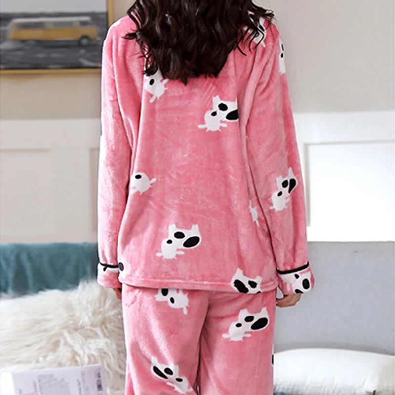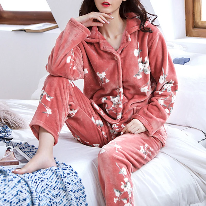 Зимний пижамный комплект, женская одежда для сна, теплая Фланелевая...