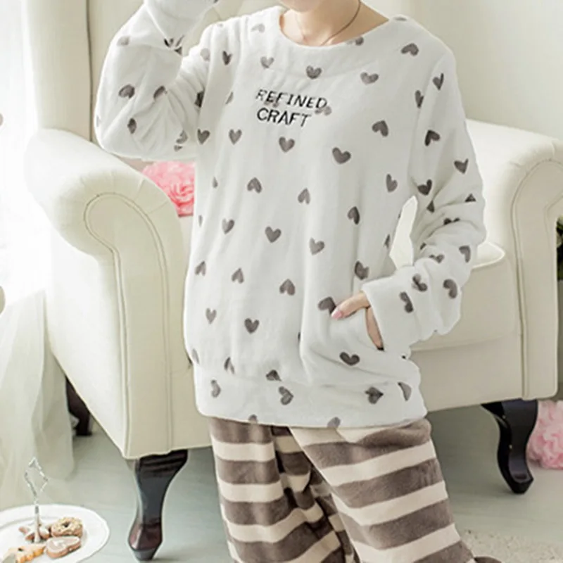 Зимние пижамные комплекты, женская одежда для сна, теплая Фланелева...