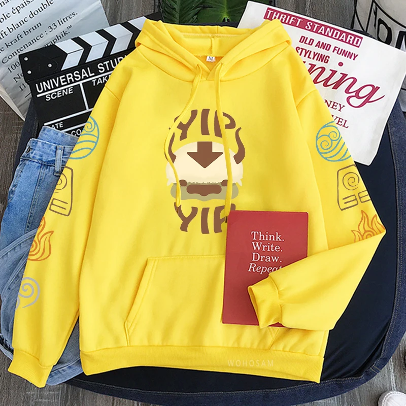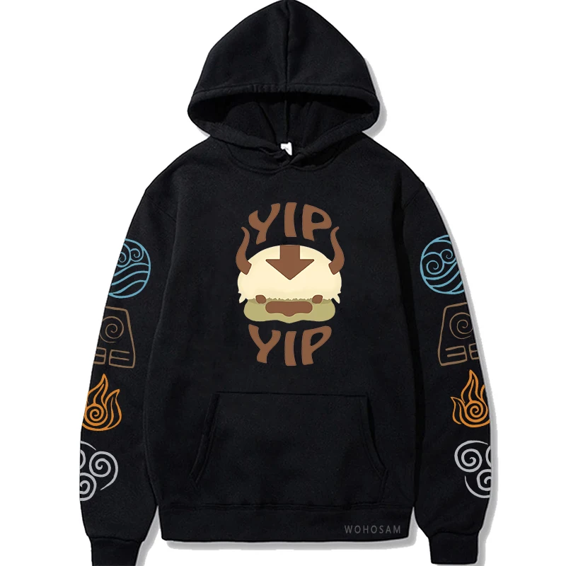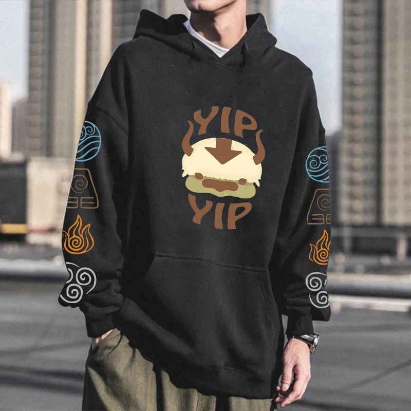 Толстовка мужская с длинным рукавом, Забавный аниме Аватар The Last Airbender, милый мультяшный рисунок в стиле Харадзюку, модная зимняя кофта с надписью YIP
