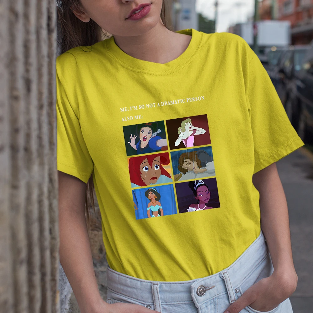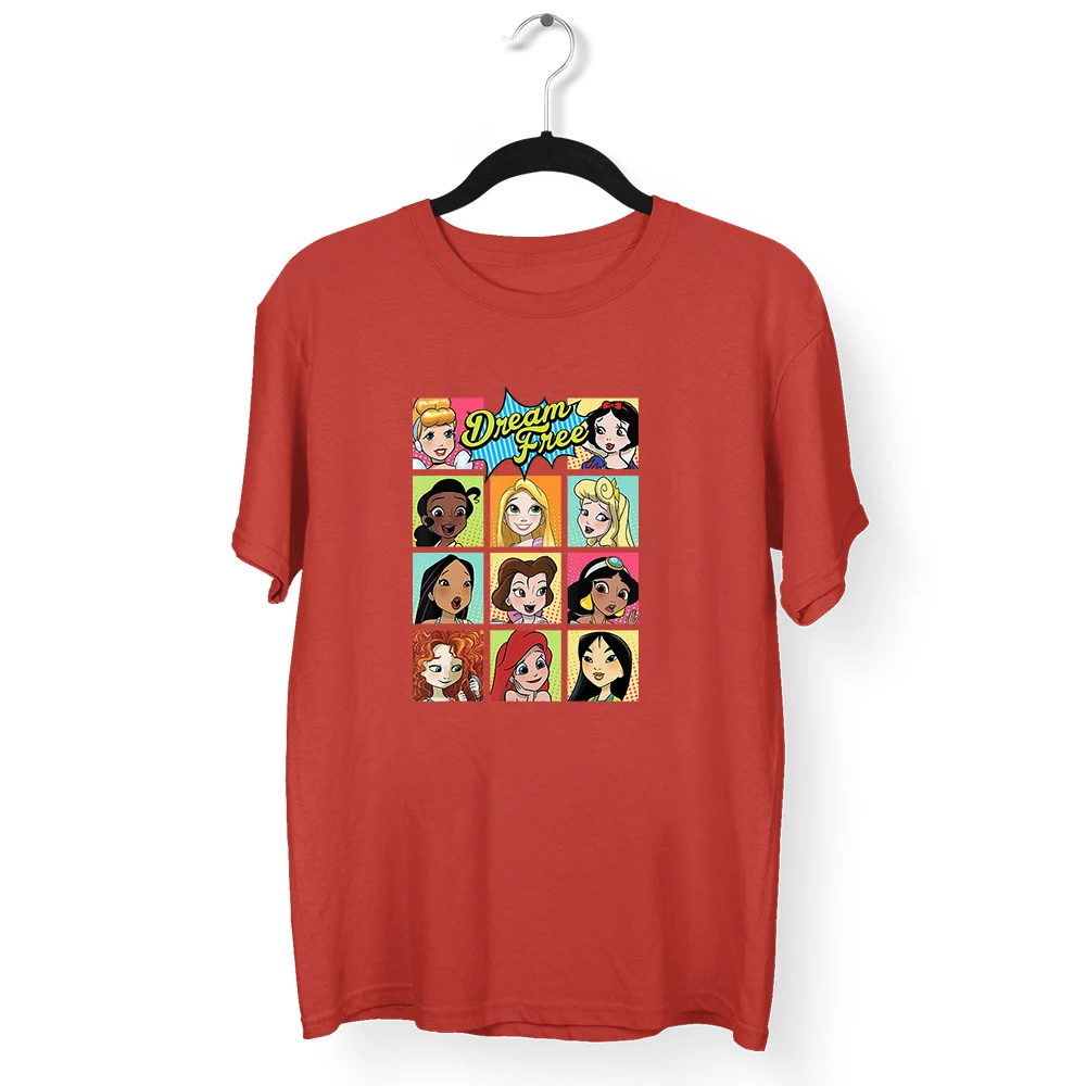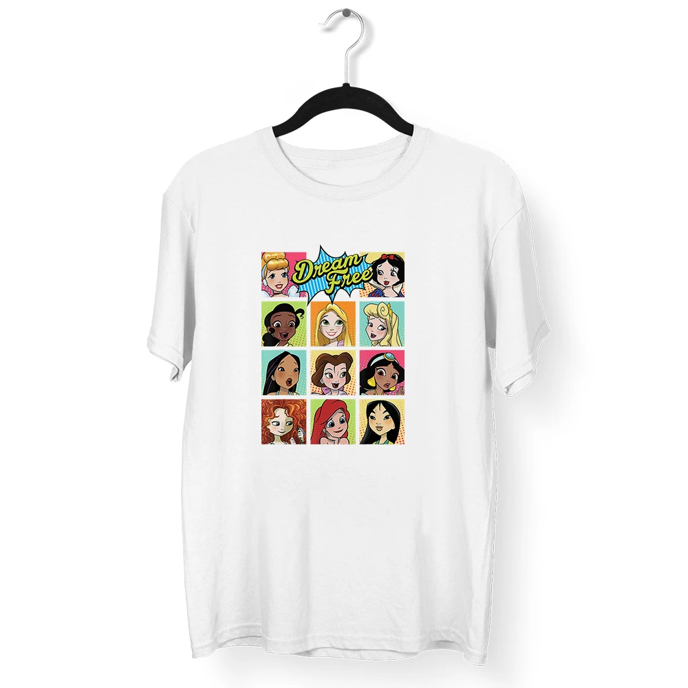 Футболки женские летние с мультяшным принтом, модные уличные Мультяшные футболки в стиле Харадзюку, Принцессы Диснея, удобные