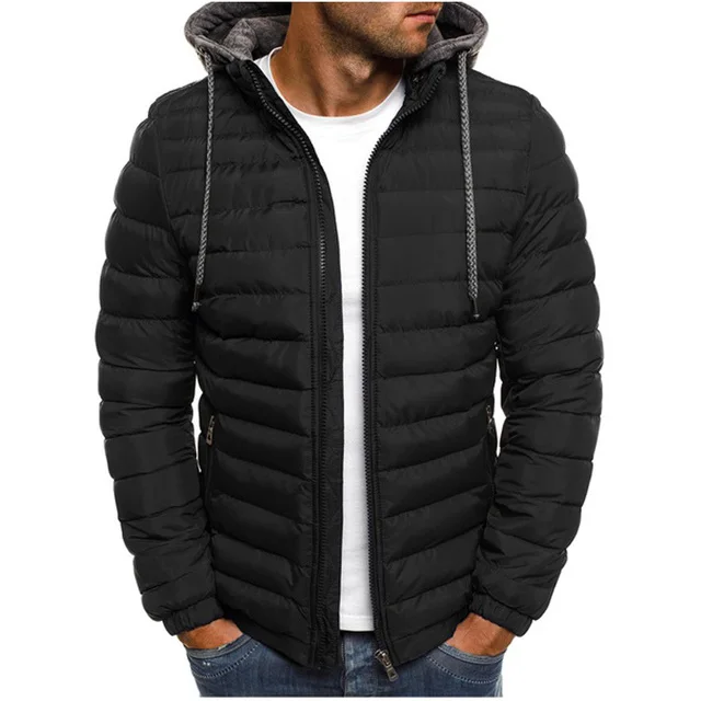 Мужская зимняя куртка, однотонное хлопковое пальто с капюшоном, теп...