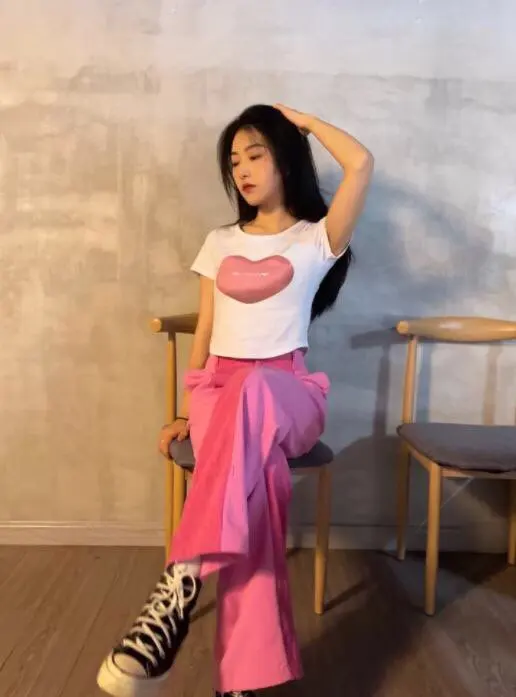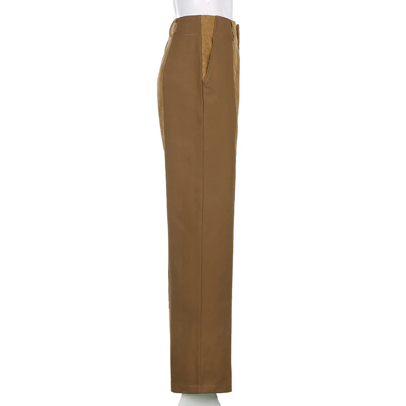 Женские прямые брюки в стиле пэчворк, свободные зеленые хлопковые брюки с высокой талией из денима в стиле Харадзюку, y2k, уличная мода, вельветовые брюки, 2021