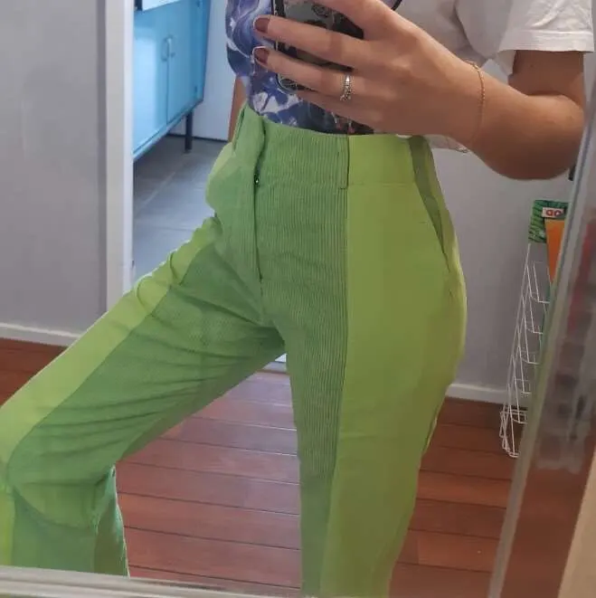 Super pants. Bright fabric, comfortable, in length ideal for height 168, volume of hips 98 and waist 76 size L perfectly approached. The only negative-fastener on the pants, immediately began to fall off, I'll sew a button. The order is satisfied, very fast delivery to Ukraine.