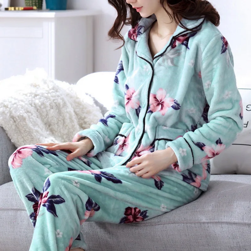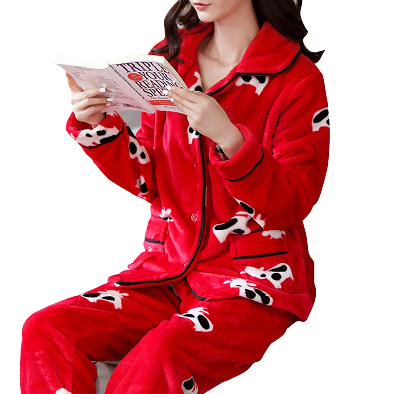 Зимний пижамный комплект, женская одежда для сна, теплая Фланелевая пижама с длинным рукавом, розовая Милая Домашняя одежда с животными, плотный домашний костюм, 2021