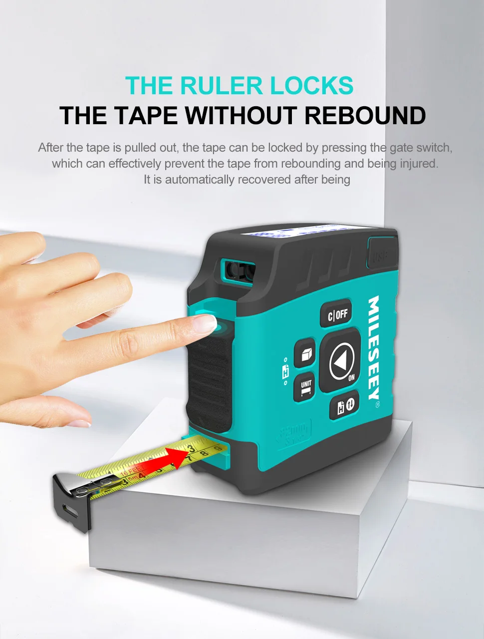 4. HD дисплей подсветки и магнитный крюкВ отличие от других трандиональных лазерных лент, эта лазерная измерительная лента принимает ЖК-дисплей обратного дисплея, лучше визуальное воздействие, не легко отразить. Кроме того, высококачественный магнитный крюк может крепиться к любому металлическому предмету, не только улучшая стабильность пользователя, но и точность измерений.