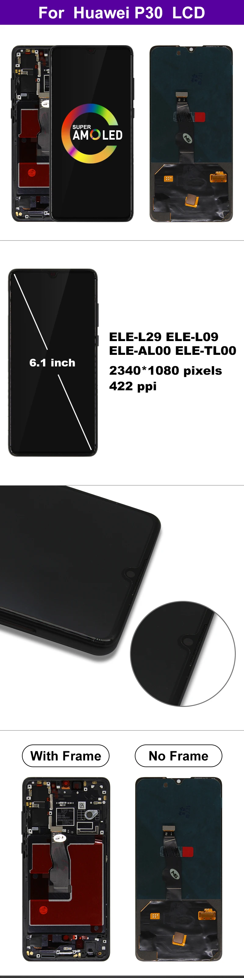 1. AMOLED ЖК-экран в сборе дляHUAWEI P30 ELE-L29 ELE-L09 ELE-AL00