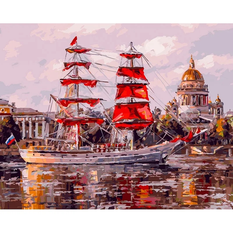Набор для творчества живопись на холсте: 450-художественный СПб. Нева. Алые паруса.
