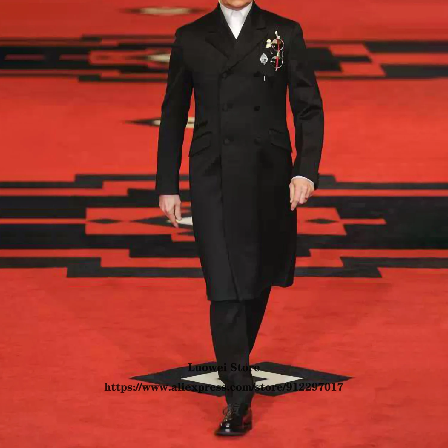 Классические черные мужские костюмы, винтажный официальный Блейзер, длинный смокинг для жениха для свадьбы, вечеринки, комплект из 2 предметов, мужской костюм (пиджак + брюки)