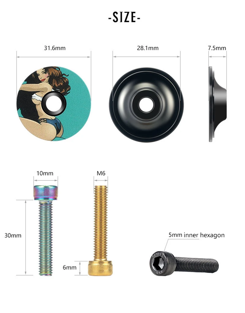 Материал: крышка из алюминиевого сплава, винты с титановым покрытием из нержавеющей сталиДиаметр крышки стержня: 31,6 мм/1,24"Подходящий размер: передняя вилка 28,6 ммВинты: M6 × 30Вес: около 6 г