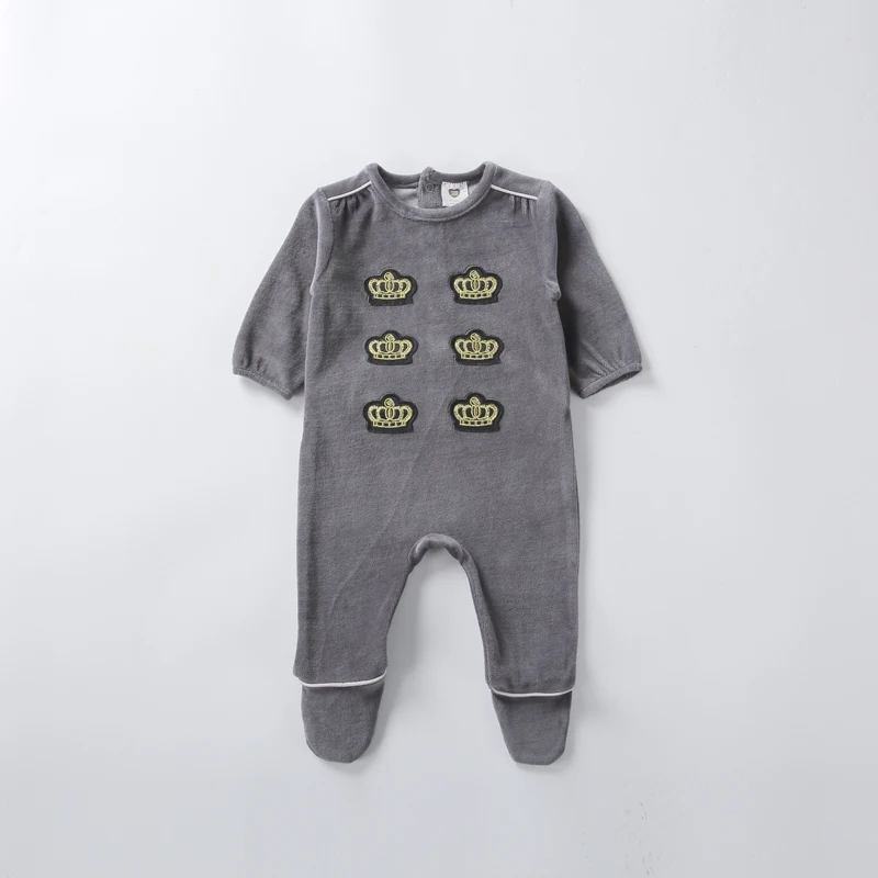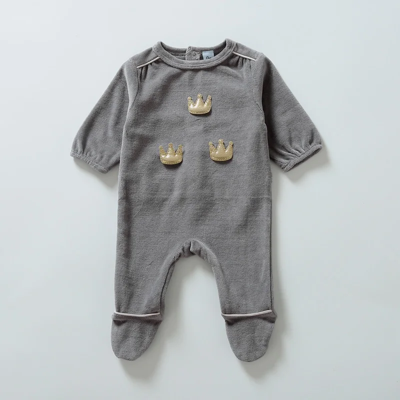 Детские ползунки, комбинезоны, одежда, комбинезоны с длинными рукавами для новорожденных, детская одежда серого цвета для мальчиков и девочек, велюровое зимнее боди с короной для малышей