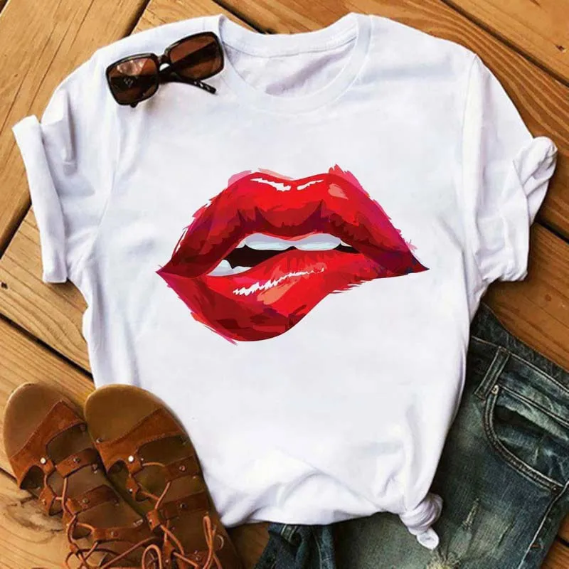 Футболка женская в стиле Харадзюку, забавный топ с принтом красных губ, модная Эстетическая рубашка для отдыха, одежда для женщин