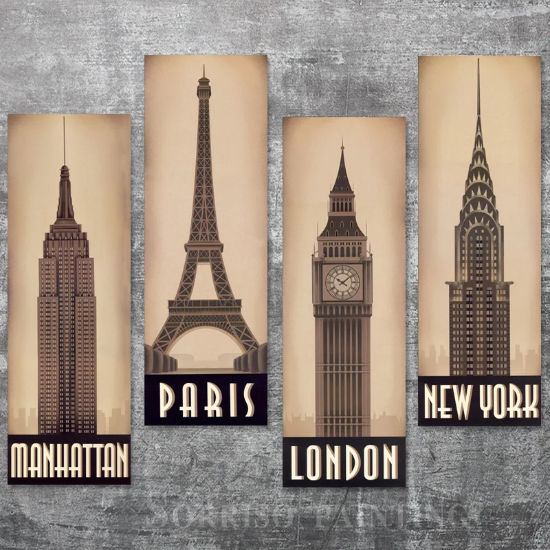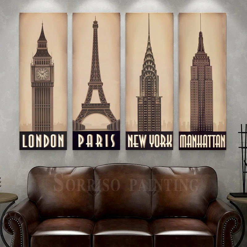 Ретро-стиль, ностальгия, Эйфелева планета, здание империи, живопись на холсте, картины, настенные художественные плакаты, принты, домашний декор для гостиной